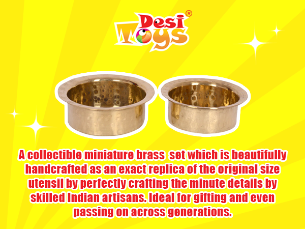 • FEATURE: A collectible miniature brass  set which is beautifully  handcrafted as an exact replica of the original size utensil by perfectly crafting the minute details by skilled Indian artisans. Ideal for gifting and even passing on across generations.