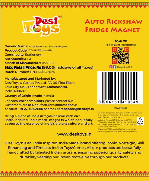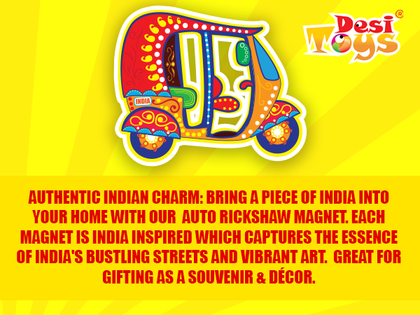 • FEATURE - Authentic Indian Charm: Bring a piece of India into your home with our  Auto Rickshaw Magnet. Each magnet is India inspired which captures the essence of India's bustling streets and vibrant art.  Great for gifting as a souvenir & décor.