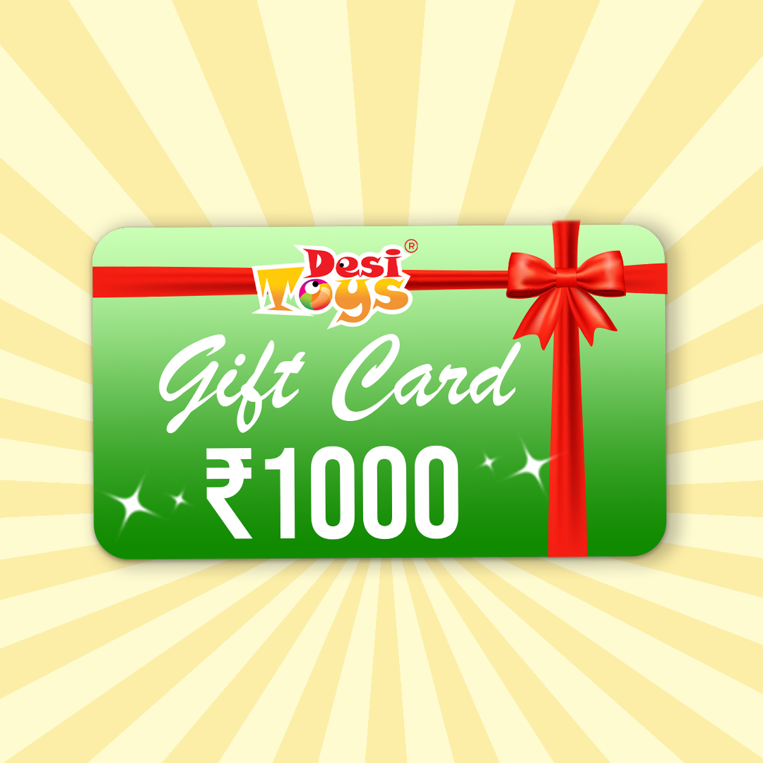 Searching for a gift that allows kids to pick their own playtime fun? Desi Toys E-Gift Cards are the perfect choice! Whether it's for a birthday, a special celebration, or just to surprise them, our e-gift cards give children the freedom to choose their favorite toys and spark their imagination.