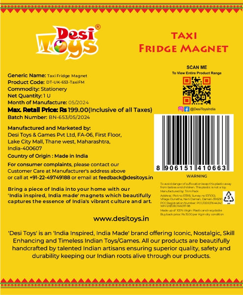 • For Consumer complaints, please contact our Customer Care at Manufacture's address above or call at+91-22-49749188 or email at feedback@desitoys.in