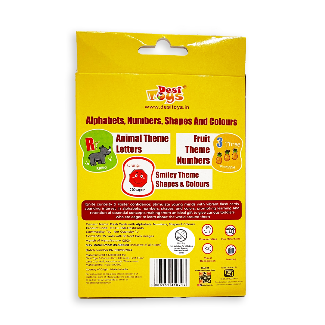 • For Consumer complaints, please contact our Customer Care at Manufacture's address above or call at+91-22-49749188 or email at feedback@desitoys.in