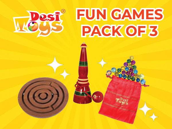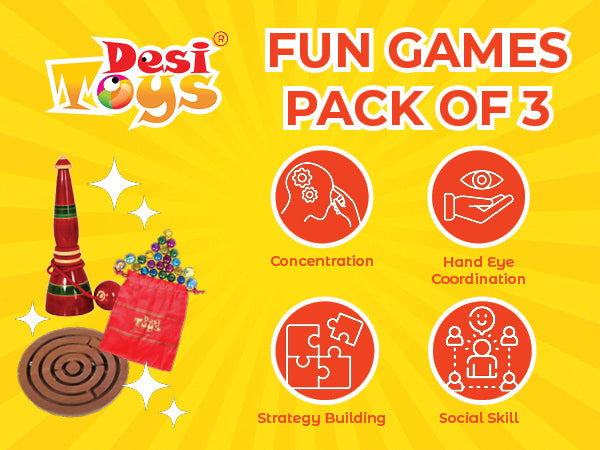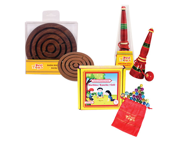 Some toys like the Wooden Spinner and Buddhijaal can be played indoors, while games like Lagori and Gilli Danda are best played outdoors.