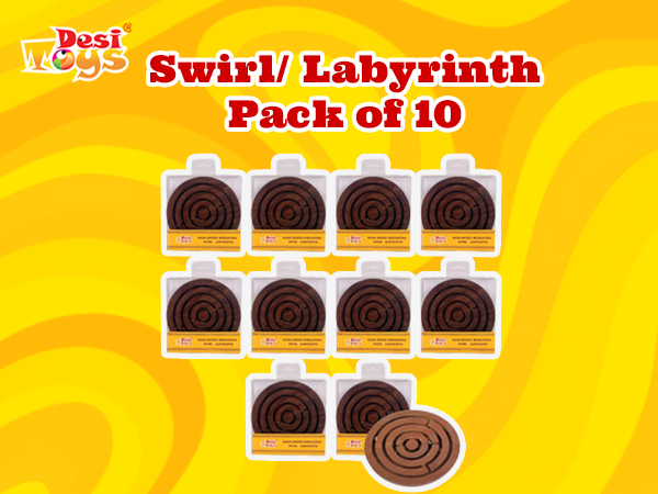 (Pack of 10) Bada Bhool Bhulaiyaa | Wooden Swirl Ball in Maze Puzzle Labyrinth | 5 Year +