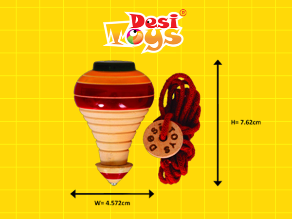 • Dimension & Contents - 5 Wooden Spinning Tops each measuring 3"x1.8"x1.8" with cords