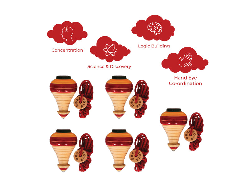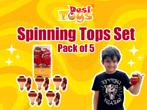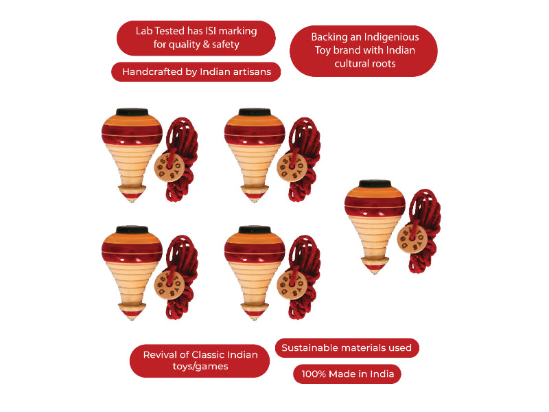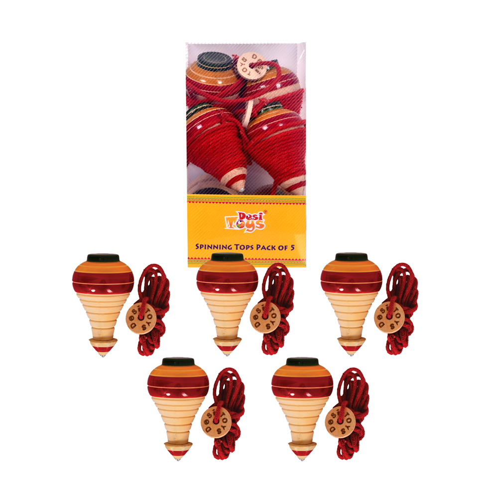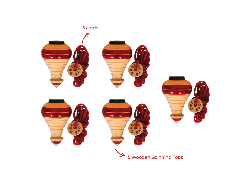 (Pack of 5) Spinning Tops | Wooden Lattu Bhawara | 6 Years +