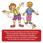 • FEATURE: Arguably the coolest of all old-school toys. No batteries or electronics, just plain old-school charm. This S.T.E.M. toy  can be played indoors but watch the fun double as your kids bring out the small source of joy from their pocket in their playtime with friends or on an outdoor trip! This comeback toy never fails to bring back the childhood nostalgia,  entertain and put a smile! It’s absolutely fun for kids as well as grown-ups ;)