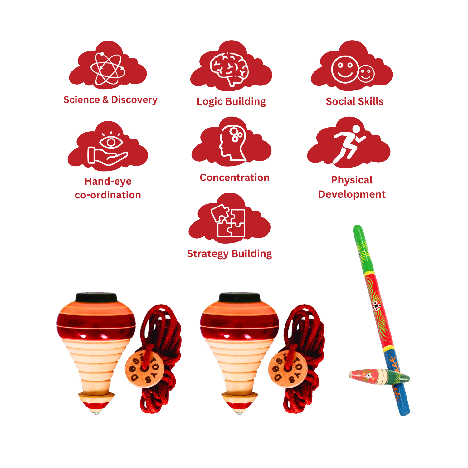 These toys help develop physical coordination, problem-solving, teamwork, strategy, and critical thinking skills.
