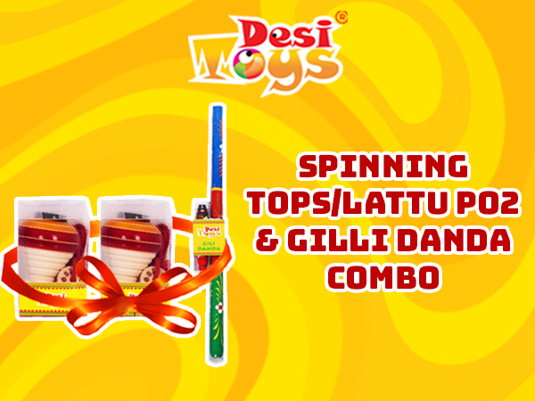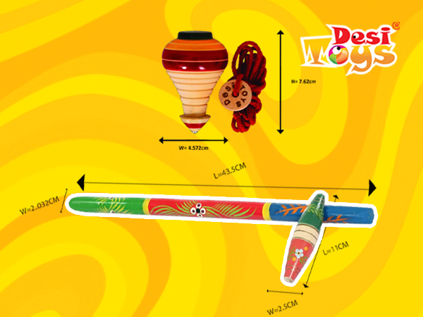 • Dimensions & Content : Spinning Tops/Lattu: 2 Wooden Spinning Tops each measuring 3"x1.8"x1.8" with cords / Gilli Danda: 1 Gili of 4.3 inches length and 1 big Danda of 16.5 inches with 1.7 inches diameter.