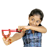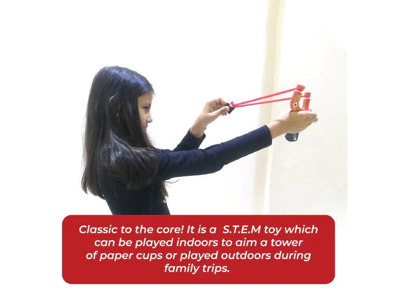 • HOW IT WORKS: Catapult/Gulel: This classic Slingshot/Catapult consists of a y-shaped frame held in the off hand, with two rubber strips attached to the uprights. The other ends of the strips lead back to a pocket which holds the projectile. The pocket is grasped by the dominant hand and drawn back to the desired extent to provide power for the projectile.