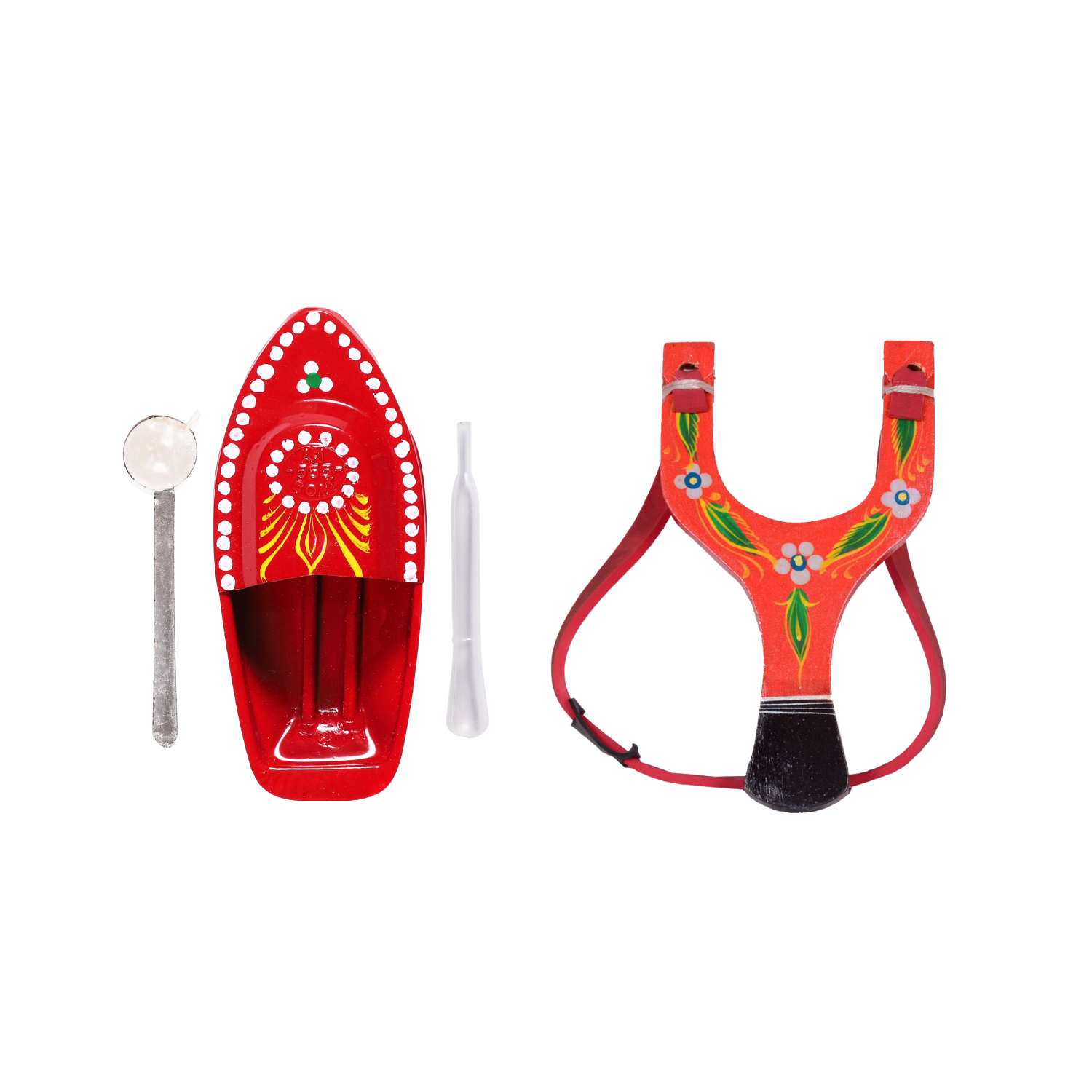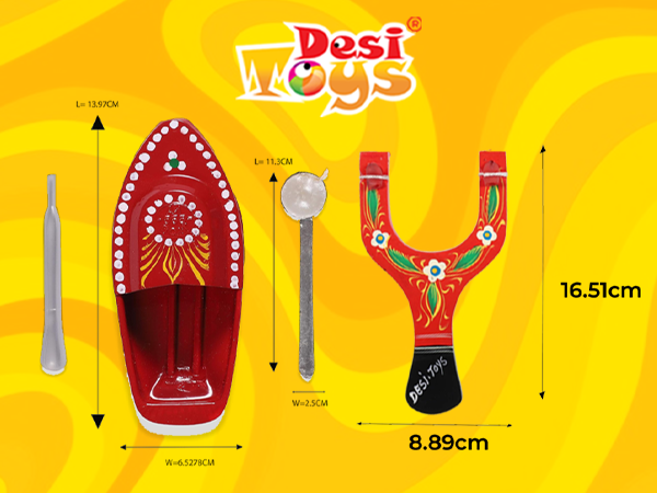 • Dimension & Content - Steam Boat: 1 Tin Toy Boat of 5.5" length, 1 Filler & 1 Candle holder with wax. / Catapult/Gulel:1 Wooden Catapult measuring 6.5" x3.5" x 0.4" with 3 Foam balls