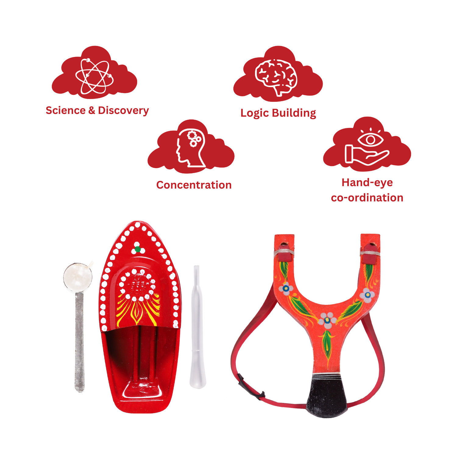 Steam Boat: SKILLS DEVELOPED: Science & Discovery, Logic building / Catapult/Gulel: SKILLS DEVELOPED: Concentration & hand eye coordination, Science & Discovery & Logic Building.
