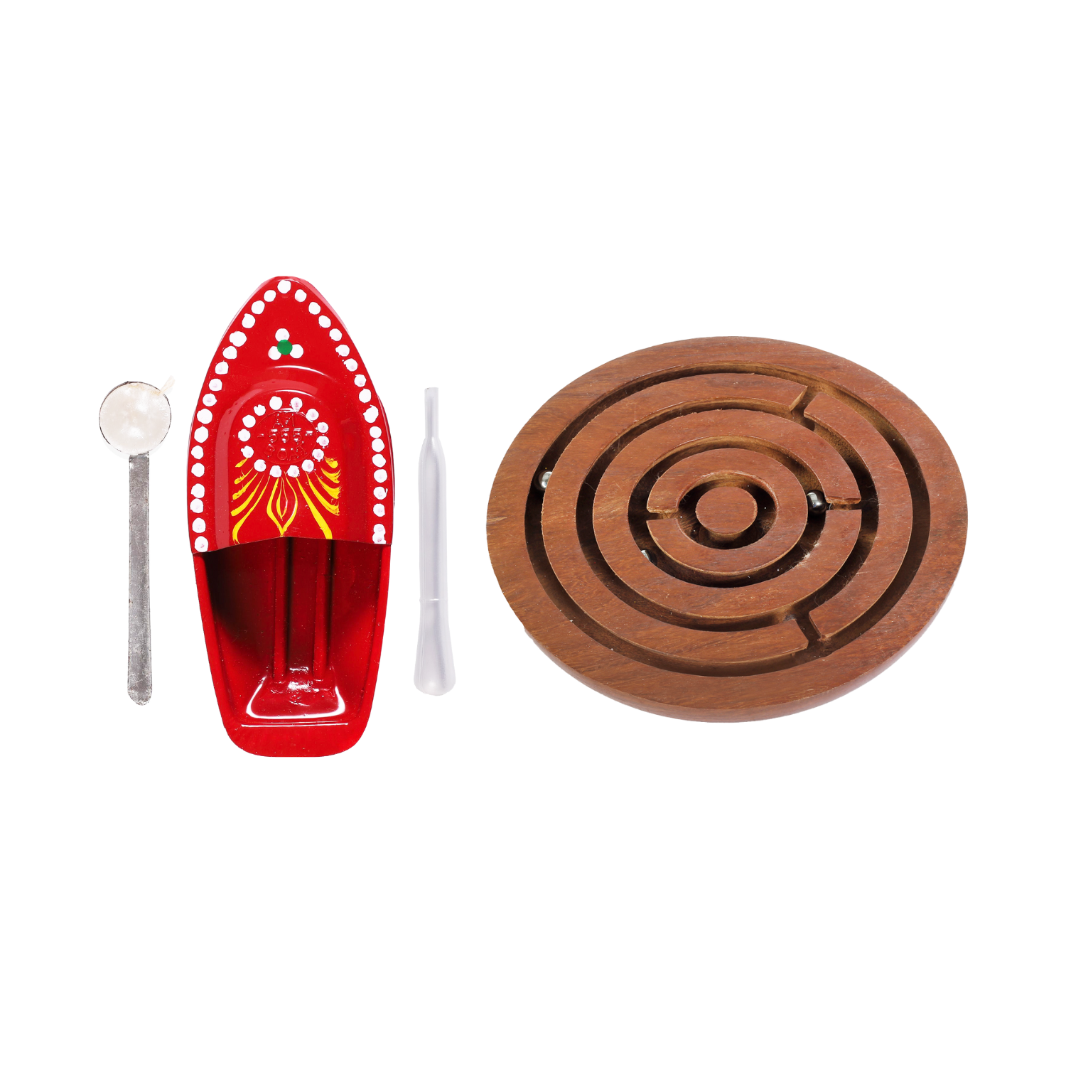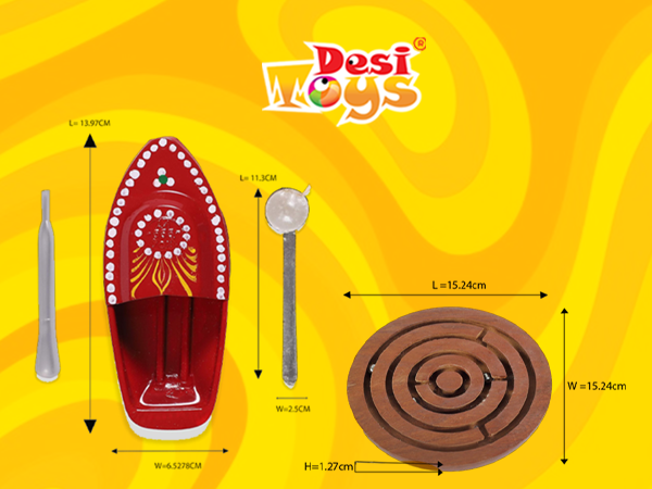 • Dimension & Content - Steam Boat: 1 Tin Toy Boat of 5.5" length, 1 Filler & 1 Candle holder with wax. / Labyrinth/Swirl:  1 wooden Labyrinth measuring 6 inches diameter
