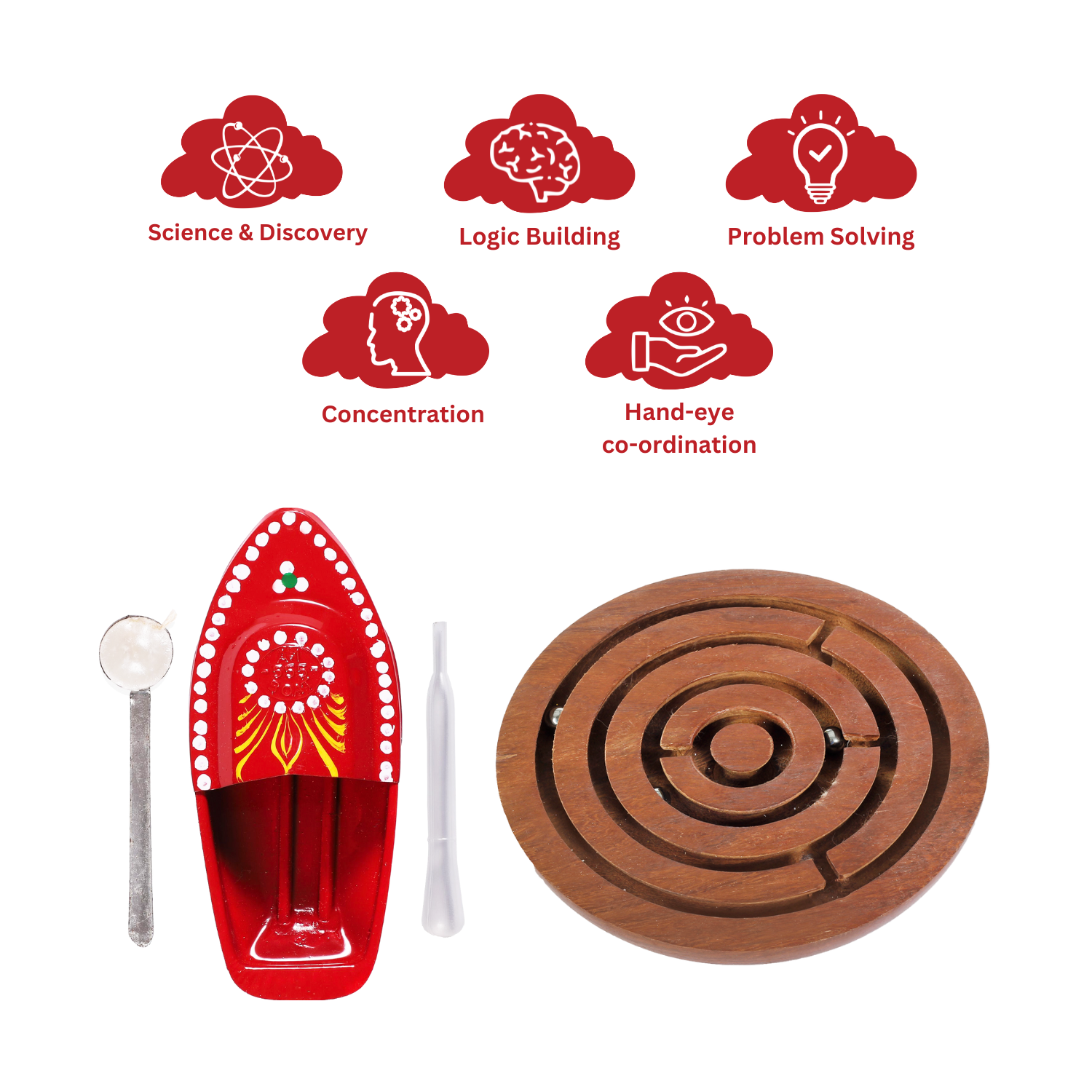 Steam Boat: SKILLS DEVELOPED: Science & Discovery, Logic building / Labyrinth/Swirl: SKILLS DEVELOPED: Concentration, Hand-eye coordination & Problem solving. SUPERIOR QUALITY & SAFETY: BIS Lab tested with ISI marking.