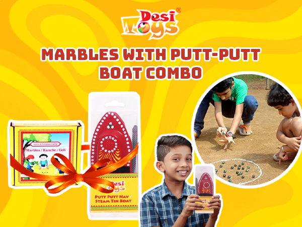 • FEATURE: Small things can do great wonders! Not talking about kids here but the S.T.E.M Tin Toy Boat which is propelled by steam. Quite a wonder isn't it? It  intrigues and makes one appreciate science. This comeback collectible never fails to bring back the childhood nostalgia, entertain and put a smile on your face! / A game of Marbles, Goli or Kanche used to be an absolute delightful game for kids in every village street in the 90s…a favorite amongst the little ones to showcase their skills to win the most marbles displaying their unique marble collection to everyone. A game of concentration, aim and skill to hit marbles accurately at a distance takes lot of energy and team play..so lets take up this  fun challenge again  with some beautiful and brightly painted colorful glass marbles!