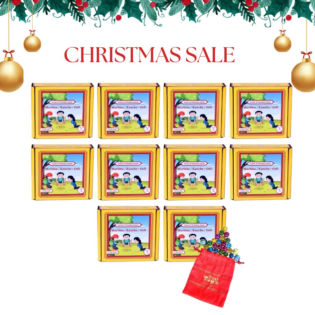 (Pack of 10) Marble Balls | Each Pack has 24 Marbles & 4 Big Shooters Kanche Game | Collectible | Festive Gift Set & Christmas Gift Set
