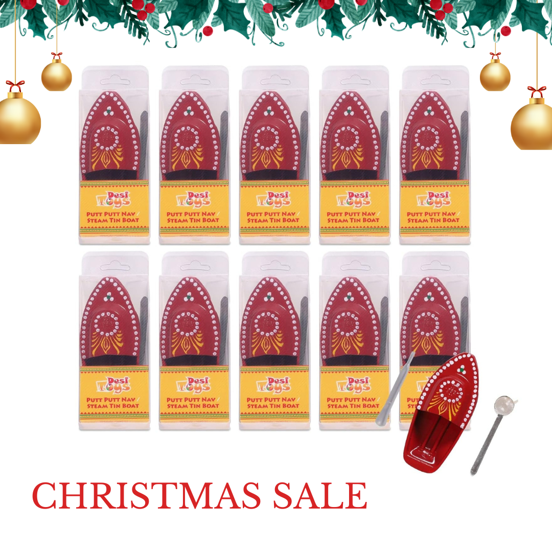 (Pack of 10) Putt Putt Nav | Pop Pop Tin Steam Toy Boat | Collectible | Christmas Gift | Festive Gift Combo