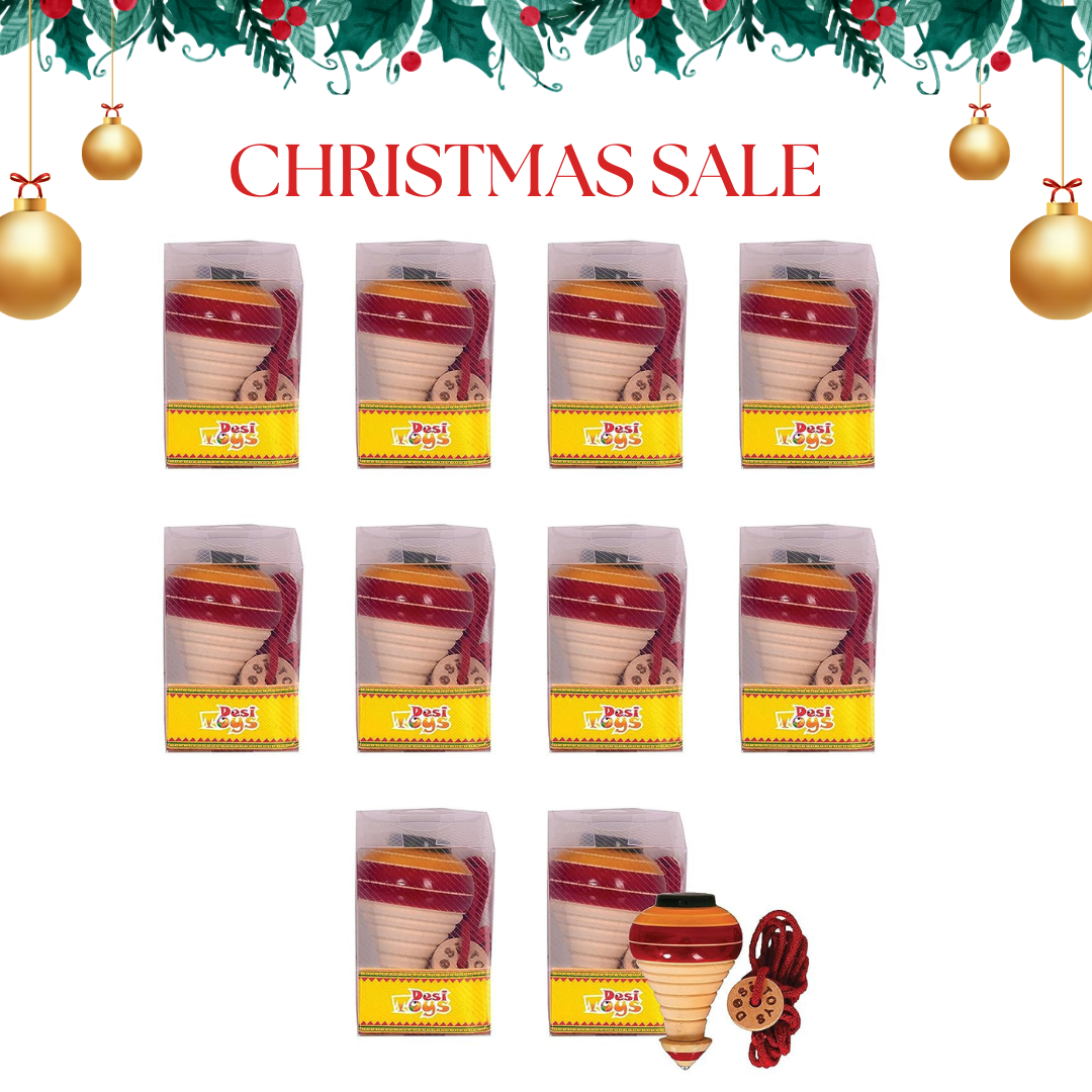 (Pack Of 10) Spinning Tops Bhawra | Wooden Lattu | 6+ Years | Festival Collectible Gift | Ideal Christmas & New Year Gift Set