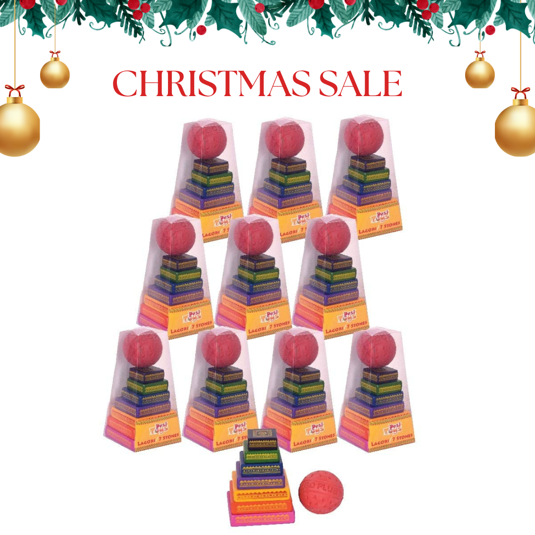 (Pack Of 10) Lagori Pitthu Game Seven Stone Game | Handcrafted Wooden Toys | 8 Years + | Festive Gift Set & Christmas Gift Set for Kids & Adults