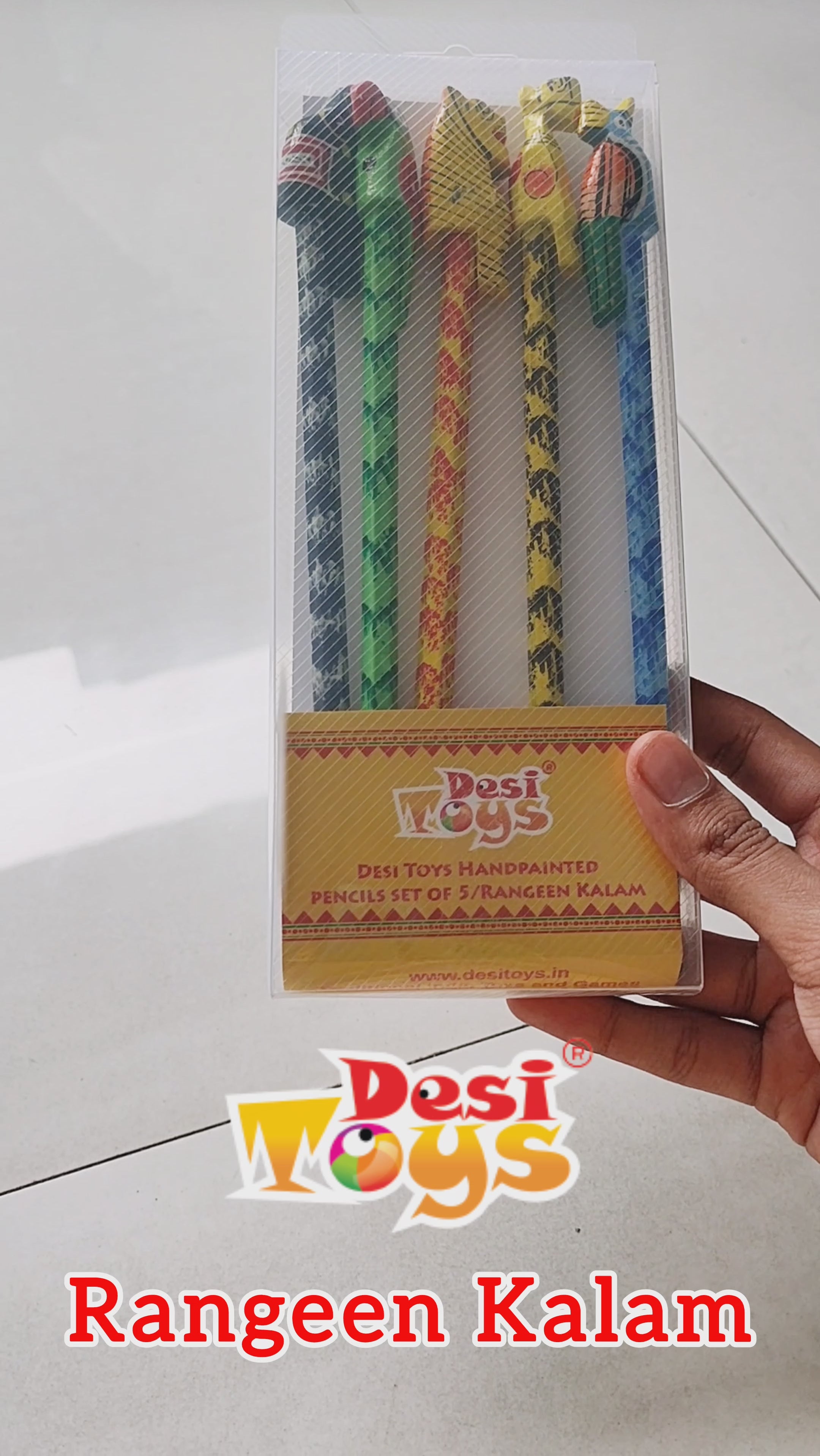 Handpainted Pencils Set of 5 | Wooden Rangeen Kalam | Collectible