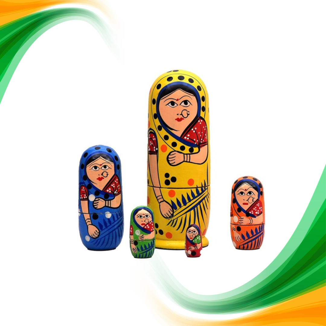 (Pack of 5) Russian Dolls | Handpainted Tin Nesting Wodden Dolls | Collectible | Festive Gift Set | Made in India toys Republic Day